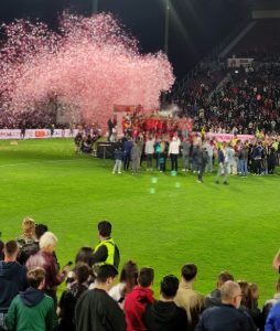 Și, bineînțeles, Gabi încearcă să ne redea și atmosfera incendiară a sărbătorii de după meci.
