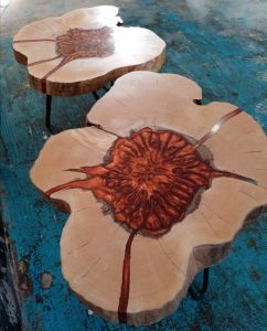 Florin Moroșanu ne împărtășește și cum se lucrează cu tipul acesta de lemn, și cum ies lucruri noi, unice dintr-un material cu imperfecțiuni. Practic, o pledoare pentru reinventare. A lucrurilor, dar, poate, mai ales a noastră.
