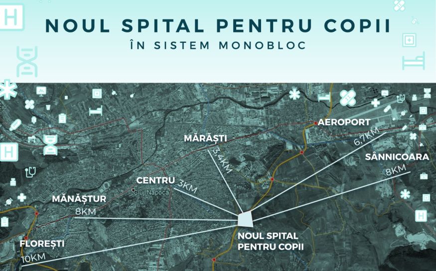 Noul Spital Pediatric Monobloc din Cluj, care va fi construit în Borhanci, va avea peste 500 de paturi pentru spitalizare continuă. Unitatea sanitară va fi prevăzută și cu paturi pentru însoțitori.